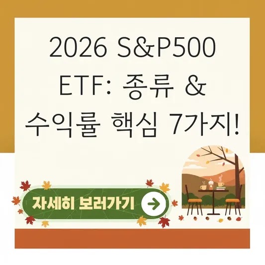 기업 문제를 풀 듯, 투자는 정보 전쟁입니다. S&P500 지수 추종 ETF, 복잡해 보이지만 핵심만 알면 쉽습니다. 이 글을 통해 2026년 최신 기준으로 S&P500 ETF 종류와 투자 수익률을 명확히 이해하고, 성공적인 투자 전략을 세울 통찰력을 얻게 될 것입니다.