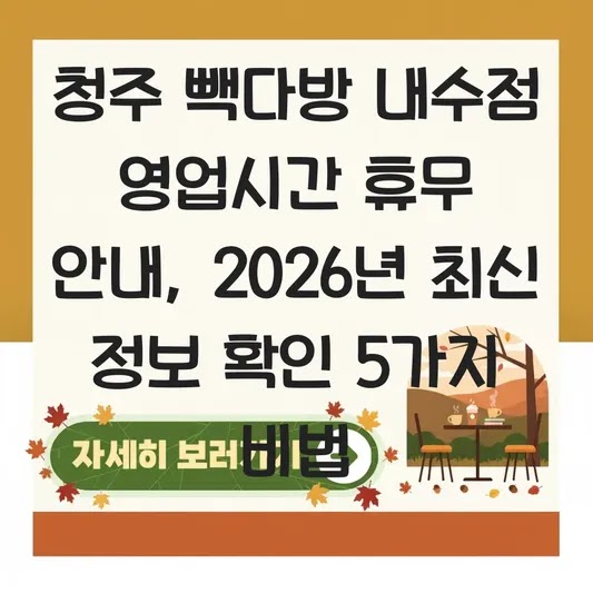 청주 빽다방 내수점 영업시간 휴무 안내, 2026년 최신 정보 확인 5가지 비법