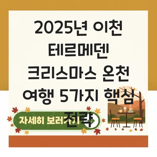2025년 이천 테르메덴 크리스마스 온천 여행 5가지 핵심 전략 연말은 1년 중 가장 비효율적인 지출과 피로가 쌓이는 시기입니다. 기업 컨설팅에서 비효율을 제거하듯, 우리의 연말 휴식도 전략적으로 설계해야 합니다.…