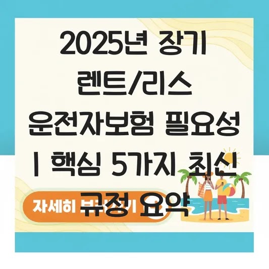 2025년 장기 렌트/리스 운전자보험 필요성 | 핵심 5가지 최신 규정 요약 장기 렌트나 리스 차량을 이용하면 '보험 걱정은 없다'고 생각하는 분들이 많습니다. 하지만 이는 치명적인 오해일 수 있습니…
