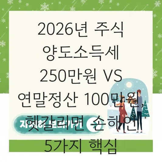 2026년 주식 양도소득세 250만원 VS 연말정산 100만원, 헷갈리면 손해인 5가지 핵심 직장 생활 30년 차 현직 컨설턴트로 일하면서 수많은 기업의 비효율적인 프로세스를 분석하고 개선해왔습니다. 놀랍게도 개인…