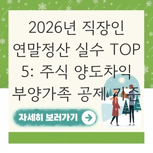 2026년 직장인 연말정산 실수 TOP 5: 주식 양도차익 부양가족 공제 기준 수많은 직장인들이 매년 연말정산을 '정부에서 알아서 해주는 행사'로 여깁니다. 하지만 저는 30년 동안 기업 컨설팅을 해…