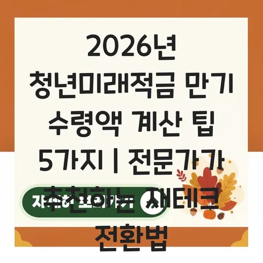 2026년 청년미래적금 만기 수령액 계산 팁 5가지 | 전문가가 추천하는 재테크 전환법 혹시 "청년미래적금"에 대해 들어보셨나요? 2026년 6월 출시 예정인 이 적금은 3년 만기로 최대 2,20…