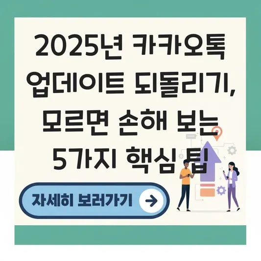 2025년 카카오톡 업데이트 되돌리기, 모르면 손해 보는 5가지 핵심 팁 최근 카카오톡 업데이트 때문에 홈 화면에 낯선 피드가 생겨나고 오픈채팅 숏폼이 자동 재생되는 등 불편함을 겪고 계시죠? 기업의 프로세스 최적…