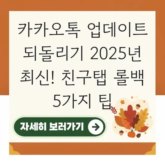 카카오톡 업데이트 되돌리기 2025년 최신! 친구탭 롤백 5가지 팁 기업 컨설턴트로 30년 가까이 일하면서 수많은 비효율적인 프로세스를 분석하고 개선해왔습니다. 최근 카카오톡의 친구탭 업데이트를 보면서, 저는 …