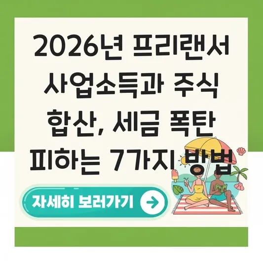 2026년 프리랜서 사업소득과 주식 합산, 세금 폭탄 피하는 7가지 방법 프리랜서로 활동하며 사업소득을 올리는 동시에, 주식 투자로 양도소득까지 얻고 계신가요? 많은 분이 두 가지 소득을 합산했을 때 연말정산 공제…