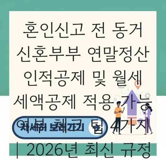 혼인신고 전 동거 신혼부부 연말정산 인적공제 및 월세 세액공제 적용 가능 여부 체크 팁 4가지 | 2026년 최신 규정 요약 결혼을 앞두고 혼인신고 없이 동거하는 신혼부부가 늘고 있습니다. '함께 살고 있으…