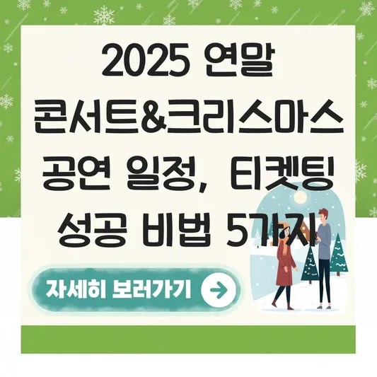 2025 연말 콘서트&크리스마스 공연 일정, 티켓팅 성공 비법 5가지 연말이 다가오면 수많은 콘서트 정보가 쏟아져 나오지만, 정작 중요한 순간에 어떤 공연을 선택해야 할지 고민하는 분들이 많습니다. 저는 기…