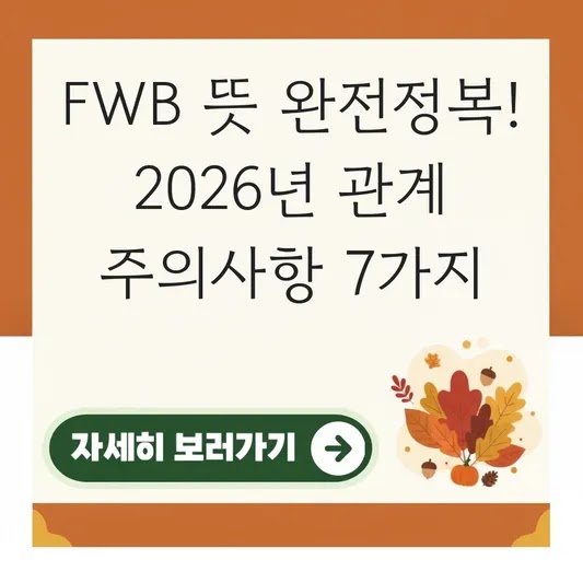 FWB 뜻 완전정복! 2026년 관계 주의사항 7가지 요즘 복잡해진 인간관계, 어떻게 관리해야 할까요? 회사에서 프로젝트를 시작할 때 '목적과 범위'를 명확히 정의하듯, 관계에서도 마찬가지입니다. 특…