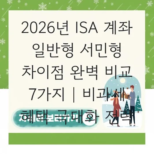 2026년 ISA 계좌 일반형 서민형 차이점 완벽 비교 7가지 | 비과세 혜택 극대화 전략 기업의 비효율을 진단하고 개선하는 컨설턴트로서, 저는 수많은 회사의 재무 구조를 분석해왔습니다. 놀랍게도 개인의 자산 관리…