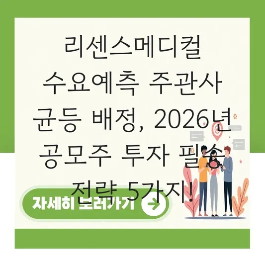 리센스메디컬 수요예측 주관사 균등 배정, 2026년 공모주 투자 필승 전략 5가지! 복잡하고 어렵게 느껴지는 공모주 투자, 그중에서도 리센스메디컬처럼 주목받는 기업의 청약은 '어떻게 해야 한 주라도 더 받을…